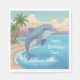 Ces serviettes, avec un joyeux dauphin, sont parfaites pour une fête d'anniversaire de garçon ou de fille. Le texte peut être modifié ou supprimé.