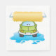 Une voiture verte heureuse qui traverse le lavage de voiture. Ce design semble vraiment efficace sur ces serviettes en papier