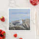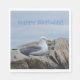 Ces serviettes d'anniversaire en papier présentent une mouette assise dans une niche d'un rocher à Hammonasset Beach à Madison, dans le Connecticut.