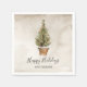 serviettes en papier Rustic Happy Holidays conçues avec un arbre de Noël aquarelle. Cliquez sur Personnaliser et Modifier tout le texte. Objets correspondants dans notre magasin Cava Party Design