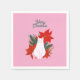 Joyeuses serviettes de Noël Floral Cat avec un chat mignon et fleurs saisonnières.