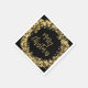 Les serviettes de fête de vacances sont ornées d'étoiles dorées scintillantes, de cercles et de points entourant les mots "Joyeux Noël" sur un arrière - plan noir. CORRESPONDANCE d'objets dans notre collection.