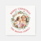 Red Joyeux Noël et couronne fleurie de fêtes de papier photo de jour férié. Personnalisez avec votre propre photo et texte.