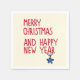 Joyeux Noël Simple moderne Typographie de Noël Papier de Noël serviettes contient le texte "Joyeux Noël et Joyeux Nouvel An" dans la typographie de script rouge moderne sur un arrière - plan crème agrémenté d'une décoration simple étoile. Parfait pour les fêtes de Noël et les fêtes. Conçu par Evco Holidays www.zazzle.com/store/evcoholidays