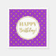 Joyeuses serviettes d'anniversaire pour la fête d'anniversaire en motif pois violet blanc et or.