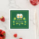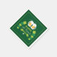 Serviettes en papier avec un design festif de la fête de la Saint Patrick avec 2 tasses de bière glacée et quelques trèfles sur un arrière - plan vert.