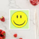 Emballage de 50 serviettes de cocktail en papier blanc avec un grand visage jaune, un aliment de base de la les années 70, et des fleurs blanches rose, bleue et violette sur vert clair. Voir la serviette en tissu assortie, serviette de cuisine, set de table en tissu et set de table en papier. Voir toute la collection Disco les années 70 Napkin dans le FOOD/BEV | Section Linge.