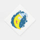 Un joyeux visage de lune jaune portant un casquette bleu et blanc. Ce design semble vraiment efficace sur ces serviettes en papier