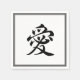 Kanji love (ai) - 愛 symbole japonais populaire. Design de texte par Alma Wad en noir et blanc.