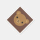 Joli ours en peluche brun joyeux contre un arrière - plan brun foncé.