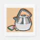 Une bouilloire brillante contre un arrière - plan orange. Ce design semble vraiment efficace sur ces serviettes en papier