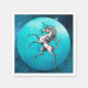 Illustration de licorne de style héraldique vintage en étain sur disque bleu aquarelle avec arrière - plan céleste plus foncé.