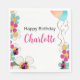 Personnalisez cette serviette de fête d'anniversaire mignonne avec le nom de votre enfant. Conçu avec des fleurs blanches colorées, des ballons et des coccinelles roses foncées que toute petite fille adorerait. Créé en partie avec des graphiques de Trina Clark acheté à digiscrapkits.com