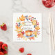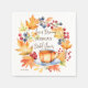 L'amour est en train de préparer la vaisselle sur le thème de l'automne pour la fête de mariage avec serviettes personnalisées, couronne de feuilles d'automne aquarelles et baies et tasse de thé à la citrouille pour la fête de thé sur le thème de l'automne serviettes pour la fête de mariage