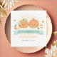 Serviettes pour fête de fiançailles, mariage ou enterrement de vie de jeune fille sur le thème de Thanksgiving, avec un couple fantaisiste, représentant une paire de citrouilles mignonnes se tenant la main. La future mariée porte un nœud papillon en forme de feuille à pois verts et tient un bouquet de marguerites dans ses mains tandis que son beau futur marié porte un nœud papillon assorti à pois. Des glands, un champignon, un doux rouge-gorge brun et des feuilles jaunes et orange ainsi qu'une bannière aqua avec des cœurs font de ce design un choix parfait pour un mariage ou une fête de fiançailles sur le thème de l'automne. "L'amour est la pumpkin spice de la vie !" Conception et illustration © Chrissy H. Studios, LLC. Tous droits réservés.