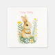 Serviette En Papier Lapin d'anniversaire & Fleurs sur serviettes blanc