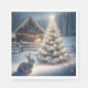 Serviette En Papier Lapin de Noël avec arbre brillant et grange