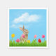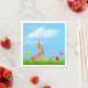 Tulipes de printemps dans l'herbe avec mignon lapin de Pâques brun et bleu ciel arrière - plan