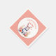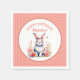 Un petit lapin lapin doux entouré de fleurs roses et coralliennes aquarelle illustration personnalisées serviettes en papier pour fête d'anniversaire pour une petite fille.