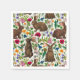 lapins et flore boisée dessinés à la main, fougères, champignons, beriies et insectes