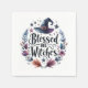 Ces serviettes fantaisistes sont ornées d'une amusante aquarelle florale avec les mots Blessed Be Witches.