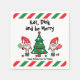 Mignonne corbeille de Noël avec Père Noël jouant au pickleball sur arrière - plan blanc. Mangez, buvez et soyez joyeux