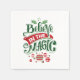 Serviettes en papier avec une jolie illustration. Texte dit Croire à la magie en lettres fantaisistes. Décoré de boules de noël.