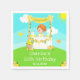 Cette serviette mignonne et capricieuse présente un fils à cheveux rouges à peau claire sur un stand de limonade jaune décoré de fleurs et de bouts. Dans l'arrière - plan est un ciel bleu, soleil et papillons. Le texte combine les polices décoratives et sans serif pour un look élégant et moderne. C'est parfait pour un anniversaire d'été. Graphiques de MUJKA