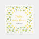 This beautiful and elegant napkin features watercolor citrus lemons and foliage. The text combines handwritten script and serif fonts for a stylish and modern look. This is perfect for a spring or summer rustic baby shower.