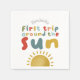 Ce design de serviette de 1er anniversaire mignonne et moderne pour garçons présente une illustration du soleil, avec le texte "premier voyage autour du soleil" en typographie colorée, et peut être personnalisé avec votre nom de garçon. Le design lumineux parfait pour le premier anniversaire de votre petit!