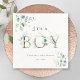 Cette serviette de baby shower est ornée d'eucalyptus à l'aquarelle peinte et de feuilles verts aux lettres d'or botanique. Pour une personnalisation plus avancée de cette conception, cliquez sur le BOUTON OUTIL DESIGN BLEU ci-dessus. Des articles correspondants sont également disponibles.