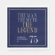 Sa vie a été une grande aventure ! Ces fabuleuses serviettes de déjeuner bleu marine pour hommes de 75e anniversaire qui disent "L'homme Le Mythe La Légende" dans une police classique en argent et or sont parfaites pour célébrer l'homme spécial dans votre vie de 75e anniversaire. Ces serviettes sont design, design, modernes et contemporaines. Pour voir vos serviettes uniques sélectionnez "Personnaliser ce modèle" et entrez vos informations. C'est super facile !