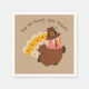 Cute dinde avec casquette pèlerin sur arrière - plan brun texturé avec citation Thanksgiving.