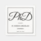 Serviettes en papier pour une soirée de doctorat avec un arrière - plan blanc et des lettres noires. Doctorat White Black Graduation Party Napkins Conception de jour férié | ©Melissa Patton - Designer