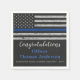 Félicitation ! Etats-Unis Drapeau américain en couleurs Police Drapeau, dessin vintage en noir. Cette collection de félicitations à l'officier de police sera un favori. Personnalisez-vous avec le nom des officiers, et les félicitations peuvent être changés en une retraite heureuse. Parfait pour un parti de retraite de la police, ou un parti de fin d'études de la police. Consultez notre mince collection de lignes bleues pour les invitations à la retraite de la police, les cadeaux de la police, les faveurs de la fête et les fournitures. DROIT D'AUTEUR © 2020 Judy Burrows, Black Dog Art - Tous droits réservés. Bleu mince Drapeau Police Officier Graduation Napkins