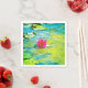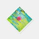 Un nénuphar fuchsia au feuillage vert citron dans une eau turquoise.