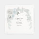 L'élégante arche rose bleue et blanche pour bébé entourée de feuillage irisé nacré améliore les noms de mariée et mariée et la date mariage sur ces serviettes en papier dans une variété de tailles et de styles. Choisissez la taille du cocktail, du déjeuner ou du dîner et le style inventé ou non. Il fait partie d'une collection de papeterie mariage avec accessoires mariages assortis. Conception créée pour BarefootBride™ © par WhimsicalArtwork™