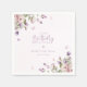 Un petit papillon est en route, des serviettes en papier Baby shower. Ambiance florale élégante rose pastel et violet dans le jardin, aux accents papillons délicats.