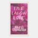 Live Laugh Love ! Profitez au maximum de votre journée spéciale. Ajoutez de belles fleurs à votre réception avec ces étonnantes serviettes d'hôtes pourpres. Lettres rose pâle pour les mots. Il est facile de customiser les noms et le message. La photographie florale montre les détails des pétales de fleurs. Faites de chaque moment de votre mariage un moment aussi merveilleux que vous !