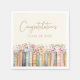 Serviettes en papier pour la remise des diplômes Floral Books. Ces serviettes en papier "Félicitations" magnifiquement conçues ajoutent une touche d'élégance littéraire à votre fête de remise de diplôme. Ornées de livres aquarelles peints à la main et de délicates fleurs sauvages dans des teintes douces de rose, de bleu, de vert et d'or, ces serviettes complètent votre événement avec une esthétique raffinée et fantaisiste. La police de caractères de machine à écrire vintage et l'écriture dorée sur un fond ivoire ajoutent une touche finale élégante. Fonctionnelles et élégantes, ces serviettes unissent votre thème de manière harmonieuse. Élevez votre célébration avec une apparence coordonnée : commencez dès aujourd'hui à planifier votre fête parfaite !