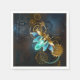 Luciole à vapeur avec ailes bleues transparentes et ampoule verte sur arrière - plan usé, marron, texturé. Style Steampunk.