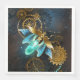 Luciole à vapeur avec ailes bleues transparentes et ampoule verte sur arrière - plan usé, marron, texturé. Style Steampunk.