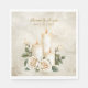 Un très beau et délicat mariage de cérémonie aux chandelles a dressé des serviettes pour le dîner. Jaune pâle aux roses blanches, aux bougies blanches et design rose.
