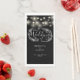 Conception de mariage noir et blanc avec de jolies guirlandes lumineuses et fleurs, ces serviettes en papier pour invités peuvent être personnalisées avec vos informations en lettrage blanc chic. Conçu par Thisisnotme