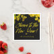 Moderne et festif, il présente un arrière - plan noir avec de grandes lumières dorées de bokeh modernes et des Cheers jaunes dorés brillants au Nouvel An. Élégant script pour personnaliser le design, ce design est destiné à une fabuleuse fête de la Saint-Sylvestre ! Salutations pour le Nouvel An ! L’original de Suki, tous droits réservés.