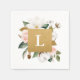 Magnolia d'aquarelle personnalisée et serviettes initiales à lettre de coton dans votre choix de cocktail, déjeuner ou dîner taille. Le design comprend des magnolias peints en aquarelle et des fleurs rousses, ainsi que des fleurs de coton et un carré doré.