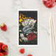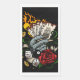 Art vectoriel original d'une main tenant des cartes qui sont en feu. Avec pièces d'or, dés, 8 Ball, Ruban et un rose.