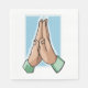 Mains ensemble dans une prière. Ce design semble vraiment efficace sur ces serviettes en papier