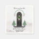 Une véranda avant classique décorée pour les vacances, avec des arbres de Noël aux étoiles flanquant l'élégante porte noire, une couronne de pin à arc en vichy rose, et des lanternes surmontées de roses et de saints. Avec l'expression "il n'y a pas de place comme la maison pour les vacances" voûtée au-dessus de la porte d'entrée et l'endroit pour personnaliser pour votre fête en bas, ces serviettes de cocktail ajouteront une touche spéciale à votre maison de vacances ou à toute fête. Dans le style de Magnolia | ferme moderne | classique et élégant.