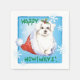 Célébrez la saison des Fêtes avec un mignon chiot maltais assis dans un chapeau de Père Noël au milieu d'un déluge de flocons de neige et les mots, Happy Howlidays !